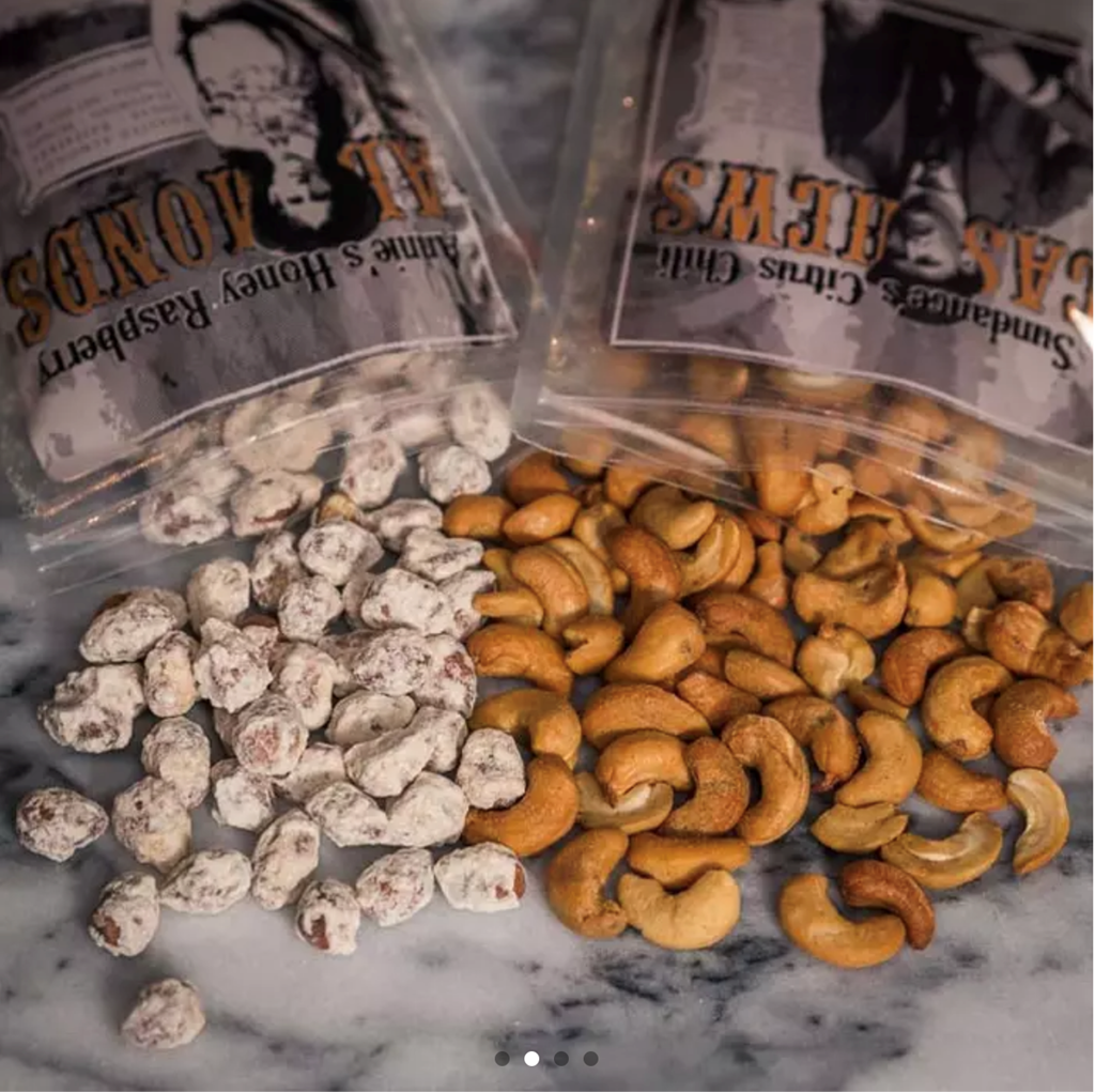 In the Box: Billy's Butter Toffee Almonds Annie's Honey Raspberry Almonds Gamblin Garcia's Garlic Jalapeno Cashews Sundance's Citrus Chili Cashews The Old West was a rowdy commotion of badges, bandits, and bullets; where the Good carried out the law, and the Bad carried out the loot. But in all the banks in all the West, there were no spoils more sought after than the tongue-tootin' belly-bootin' bonanza of flavor known as Saloon Nuts. **Pick up during our scheduled days and time windows from any of these locations: DPS in Palo Alto, Sunnyvale, and Redwood City. The final day for pick-up is August 31st, 2023.**